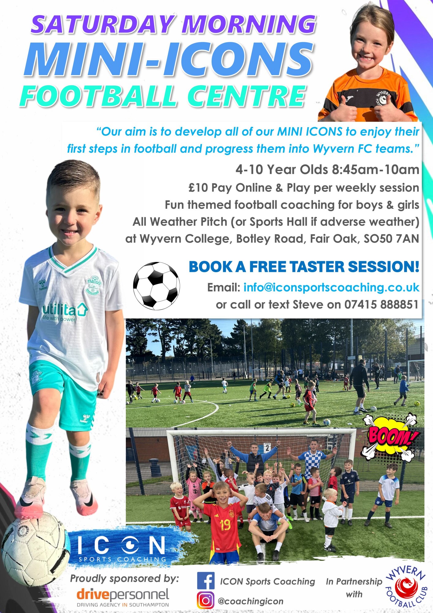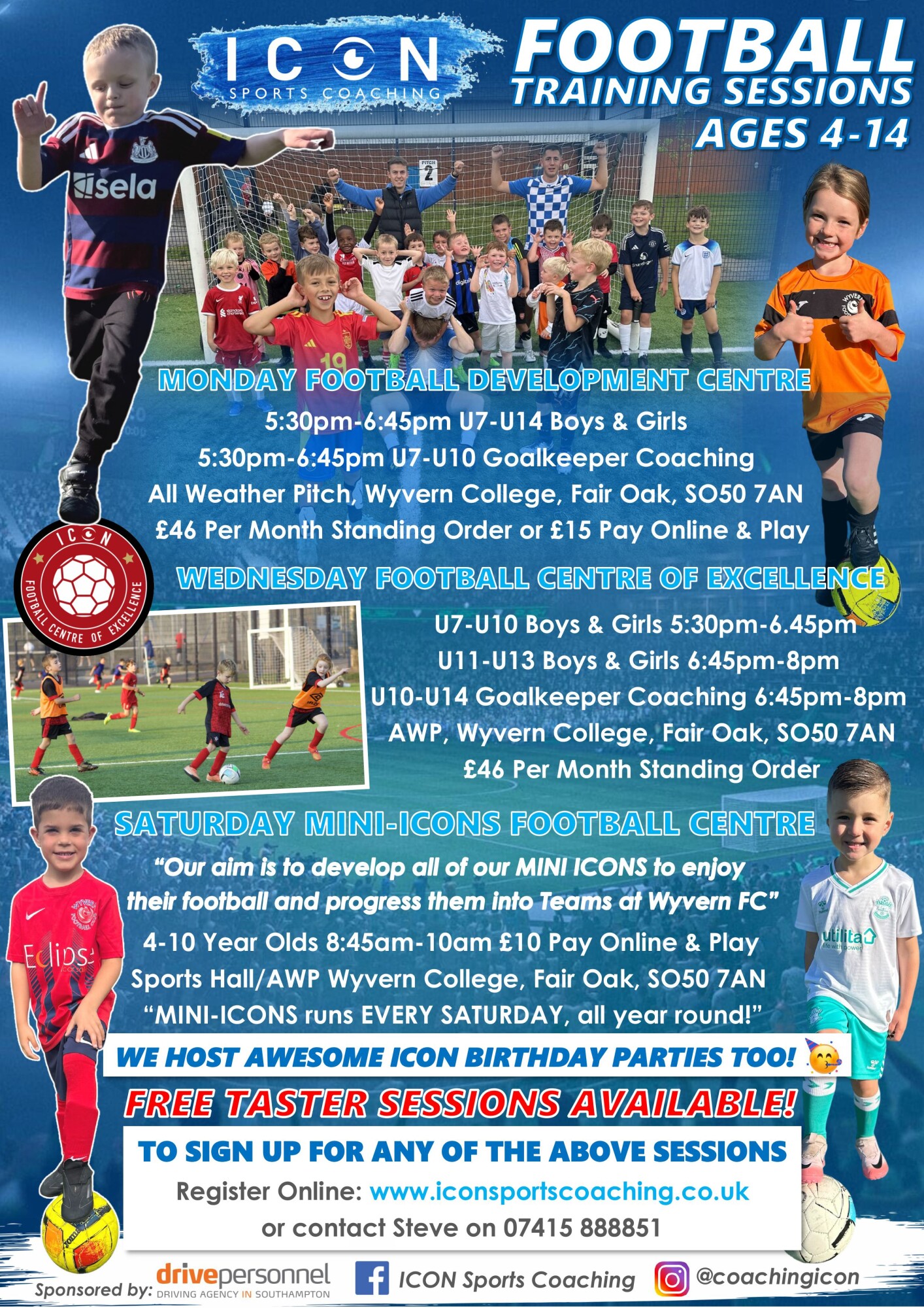 ICON Football Sessions - Age 2-U14's Boys and Girls - Professional Football Coaching Sessions run by ICON Sports Coaching - are regularly held at Wyvern throughout the week - various sessions from Age 2 - U14 are available.